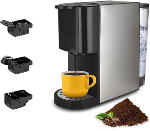 Generic - ماكينة قهوة 3 في 1 بقوة 1450 وات – ضغط 19 بار – متوافقة مع أنظمة كبسولات القهوة القياسية والقهوة المطحونة – خزان مياه 0.8 لتر – تسخين سريع – تصميم مدمج موفر للمساحة