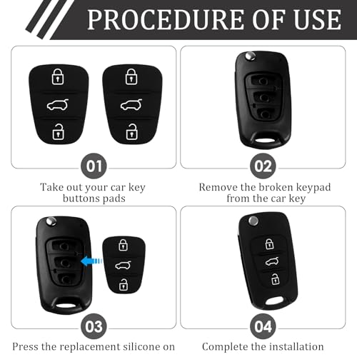 - توافق واسع النطاق: تتوافق وسادات الزرار المطاطية لمفتاح السيارة هذه مع كيا ايهو وكارينز وسيد وبرو سيد وبيكانتو وريو وسورينتو وسول وسبورتاج وفينجا وهيونداي i10 i20 i30 i40 ix20 ix30 ix25 ix35 ix45 ix55 وتوسان وسانتا في والنتر واكسنت وسولاريس وفيلوستار وغيرها من السيارات.