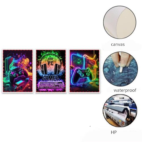 AOSEE - 3 قطع 16 انش × 12 مؤطرة لديكور غرفة الالعاب من القماش لوحة فنية مطبوعة باطار العاب الفيديو ملصقات بالوان مائية للاولاد والاطفال والمراهقين وغرفة النوم اللعب ديكور حائط