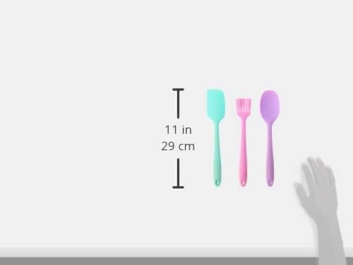 Generic - مجموعة ملاعق مسطحة ملونة من السيليكون مكونة من 3 قطع - ادوات مطبخ مقاومة للحرارة وغير لاصقة للخلط والكشط والدهن والتقليب