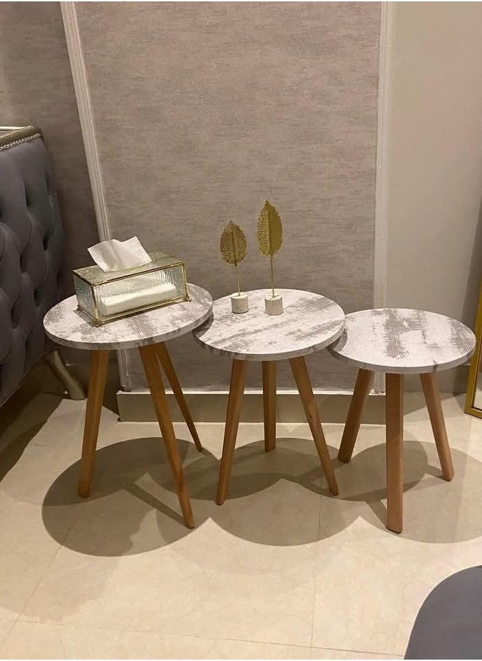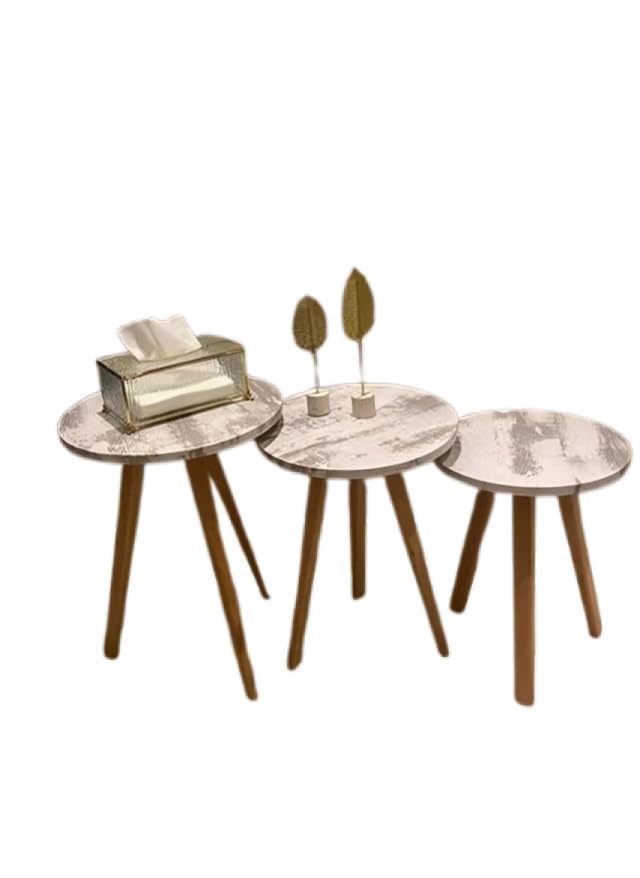 - طاولة تقديم استقبال 3 قطع بتصميم عصري وبسطح بيضاوى الشكل بلون أبيض وأرجل من الخشب الطبيعي، مناسبتان لغرفة المعيشة والمنزل والمكتب