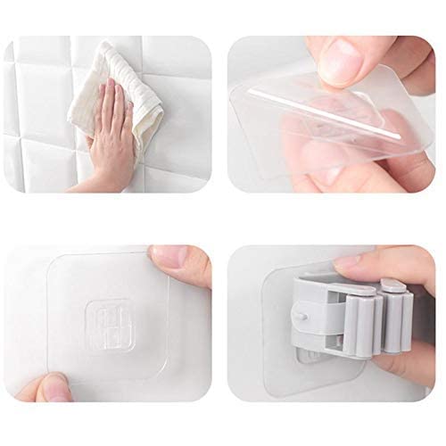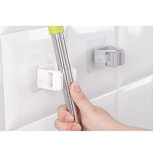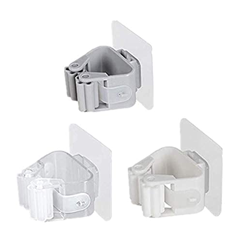 Spaceshoop - حامل ممسحة منظم تثبيت بالضغط لاصق مكون من 3 قطع يوضع على الحائط لوضع الممسحة والمكنسة عليه مزود بمشبك للممسحة سلس يمكن تثبيته في الحمام والمنزل والمطبخ، بلاستيك، متعدد الالوان