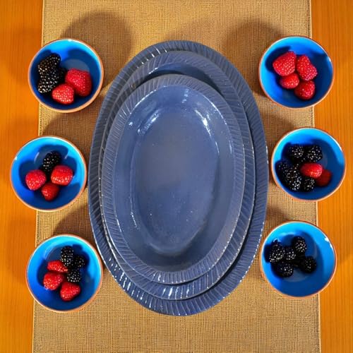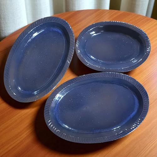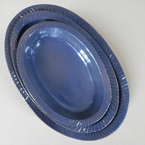 Generic - طقم 3 سرفيس بيضاوي من الفخار و الخزف لتقديم الطعام و للديكور امن داخل الافران و الميكروويف ser13