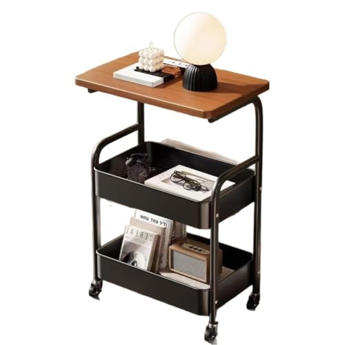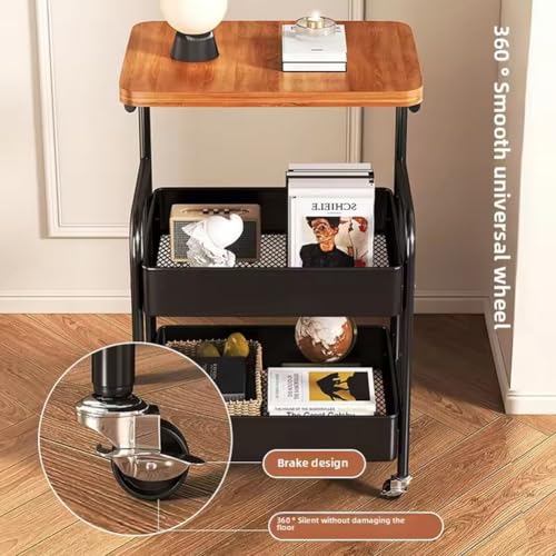 GarveeHome - عربة دوارة من 3 طبقات مع طاولة خشبية، عربة متعددة الاغراض بعجلات قابلة للقفل، منظم تخزين متعدد الاغراض للمطبخ والمكتب وغرفة النوم، اطار معدني قوي للمساحات الصغيرة، سهلة التجميع