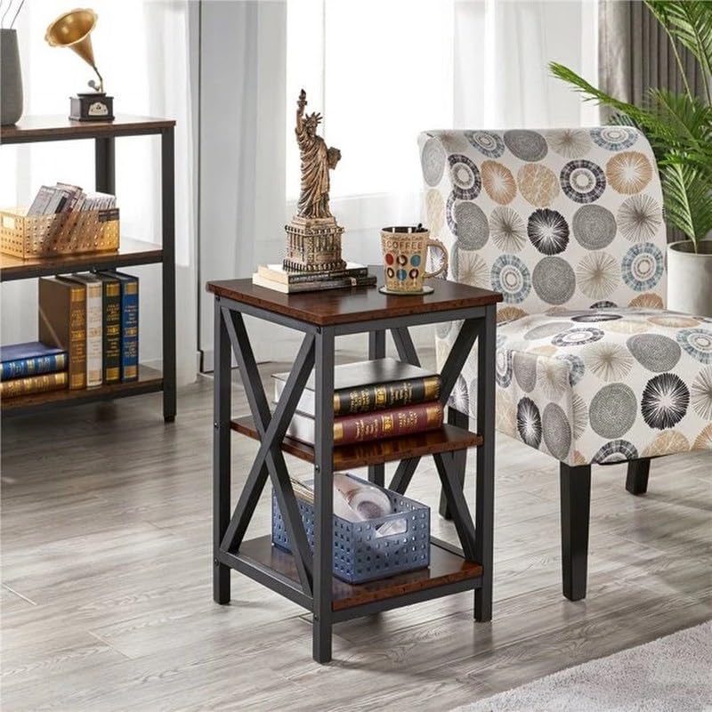 Home Gallery - ترابيزة جانبية من 3 أرفف بإطار، بني