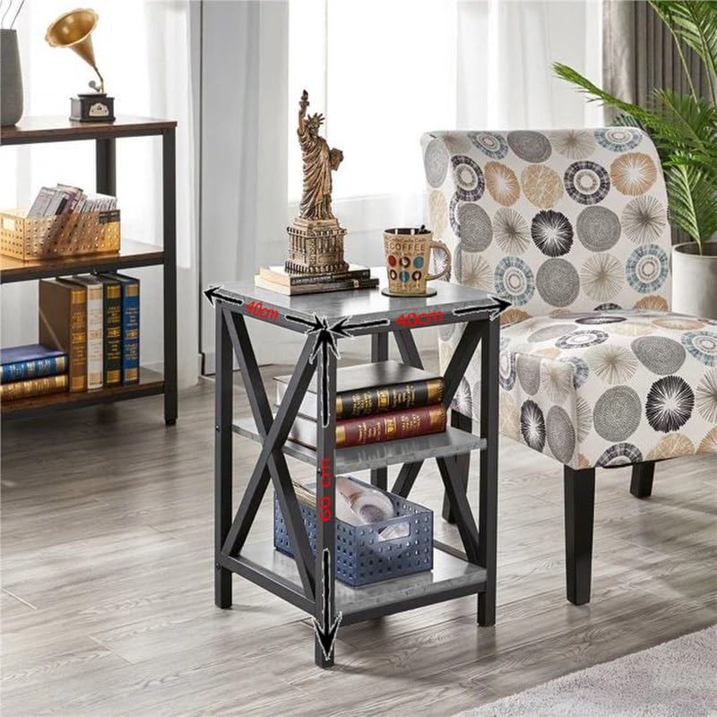 Home Gallery - ترابيزة جانبية بإطار على شكل حرف X وتصميم مكون من 3 أرفف، لون رمادي