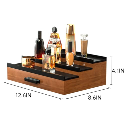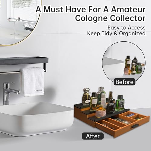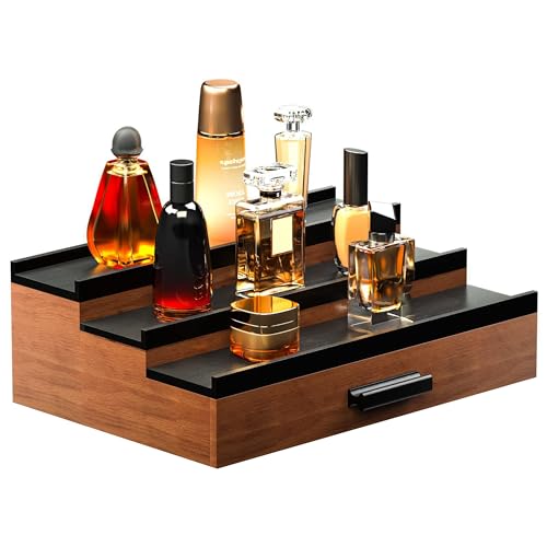 LorZacio - منظم كولونيا خشبي من 3 طبقات مع درج تخزين، رف لتنظيم العطور وتخزينها، رافعات عرض للرجال