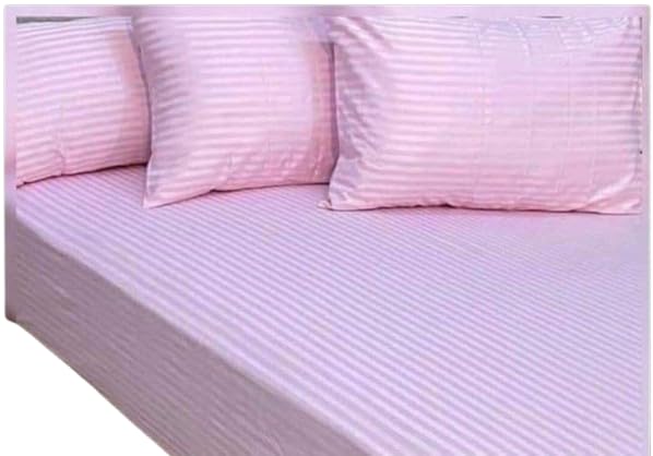Generic - ملايه خامه استريب قطن بتركب حتي ارتفاع ٣٠ سم للمرتبه KO (بينك, مقاس ١٢٠سم ملايه +خدادية)