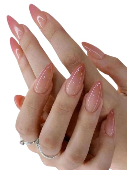 Generic - 30 قطعة من الأظافر الطويلة على شكل لوز بلون زهري سادة تعمل بالضغط الهوائي اللطيف