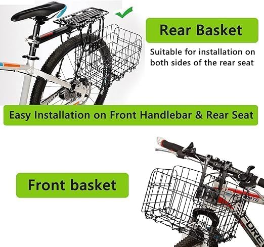 - ✅ تثبيت مرن: سبت عجلة يمكن تثبيته أو تعليقها بالخطافات بسهولة على الدراجة الأمامية أو الخلفية.