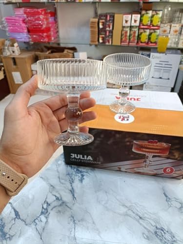 - محتويات الطقم: تتضمن 6 أكواب كوبيه كريستالية متطابقة، معبأة بعناية لضمان التسليم الآمن