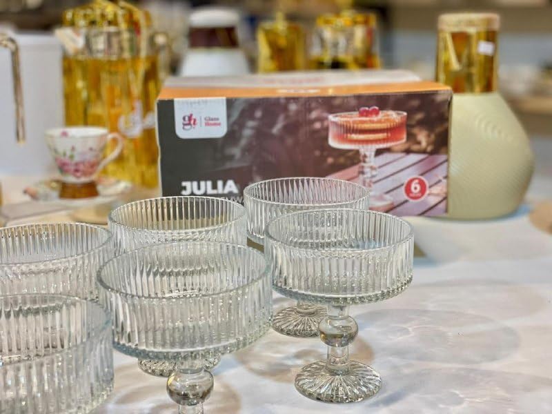 - تصميم أنيق: أكواب الكريستال الكوبيه تتميز بتصميم متقن ذو نمط متدرج، مما يجعلها مثالية لتقديم الحلويات والكوكتيلات بأناقة.