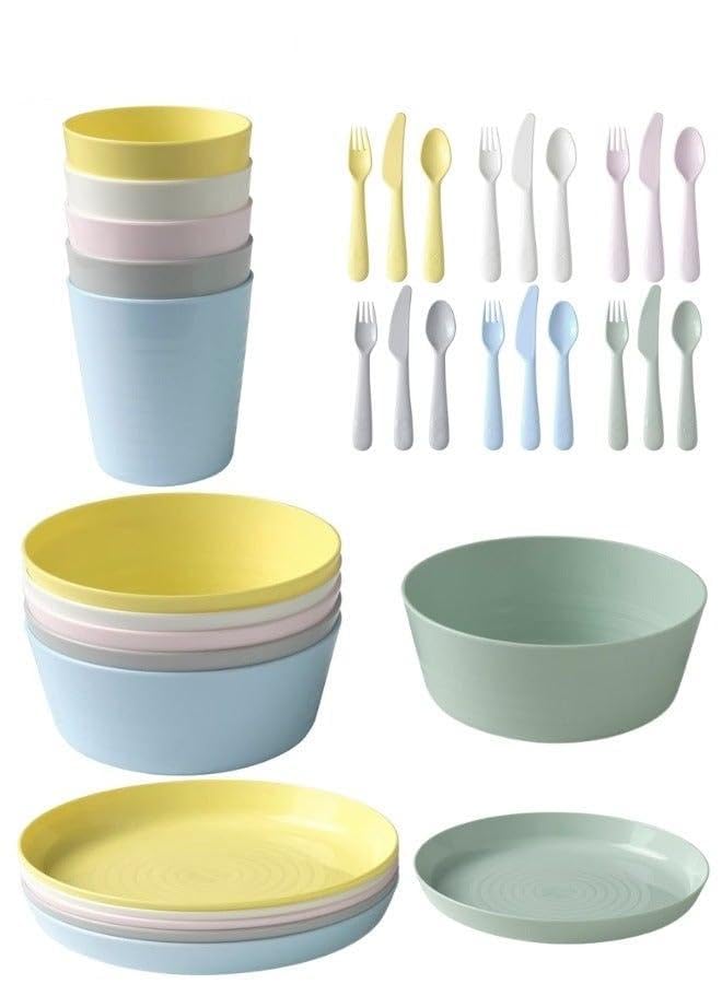 generic - طقم عشاء للاطفال مكون من 36 قطعة مصنوع من بلاستيك البولي بروبلين الخالي من البيسفينول ايه يتضمن ادوات مائدة واطباق واوعية واكواب للميكروويف