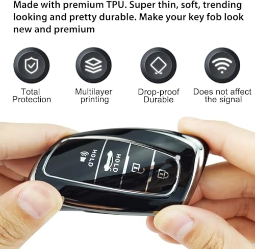 Generic - غطاء مفتاح ذكي TPU حماية كاملة 360 درجة – متوافق مع تويوتا كامري 2018-2022 وRAV4 وهايلاندر وأفالون وC-HR وبريوس وكورولا وGT86 – مخصص لنظام الدخول الذكي – لون أسود