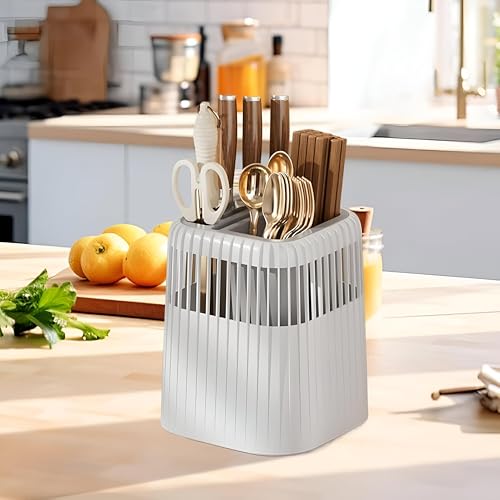 Generic - حامل سكاكين 360 درجة - تصميم مربع دوار مع مساحات تخزين متعددة لتخزين السكاكين والمقصات وعيدان تناول الطعام، مثالي لتوفير المساحة والحفاظ على تنظيم المطبخ دون عناء.