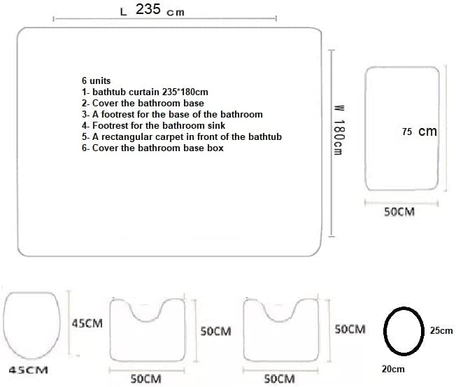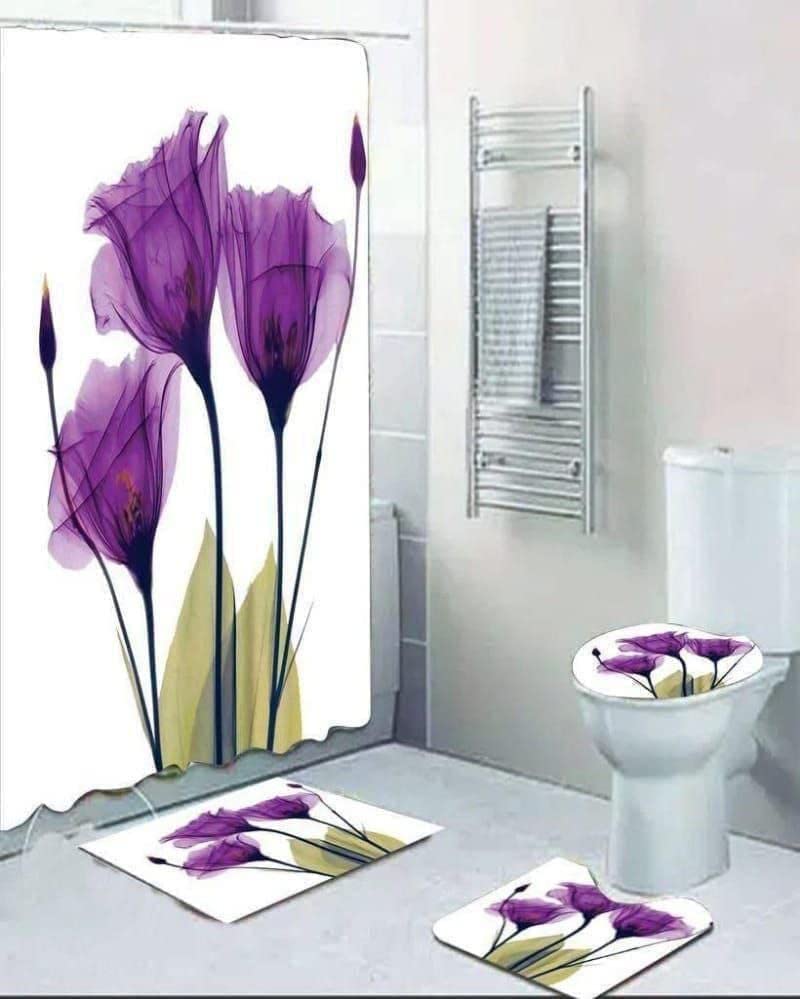 Generic - طقم حمام بالستارة 3D خامة ثقيلة 5 قطع رسمه 76