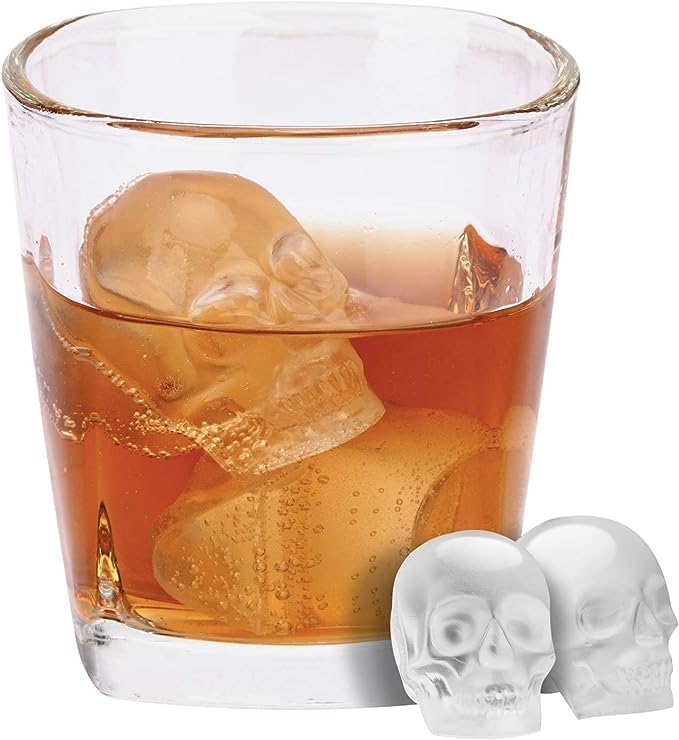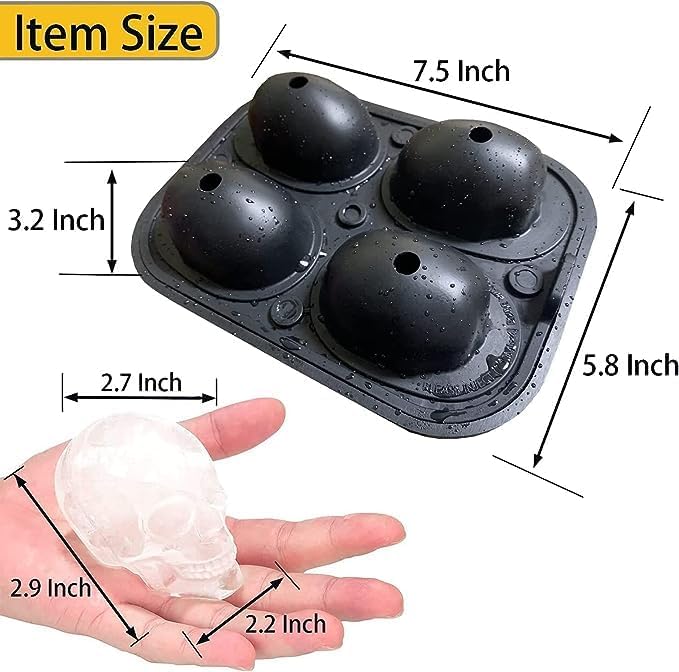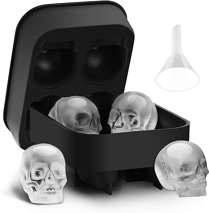 Generic - قالب مكعبات ثلج ثلاثي الأبعاد، 4 تجاويف بشكل جمجمة دائرية من سيليكون آمن غذائيًا ومرن وغير سام، مناسب للعصائر والمشروبات