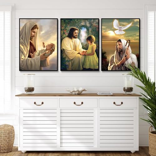 CENDAP - 3 قطع من لوحات فنية جدارية دينية قماش برسمة يسوع المسيح بوسترات وصور ومطبوعات ورسومات جمالية كبيرة للكنيسة وغرفة النوم المعيشة وزينة المنزل غير مؤطرة
