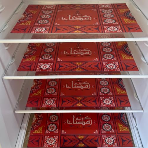 Generic - طقم 4 مفارش بلاستيك رمضانية بنقوش إسلامية – متعدد الاستخدامات للثلاجة والطاولات (33×48 سم) (خيامية 2)