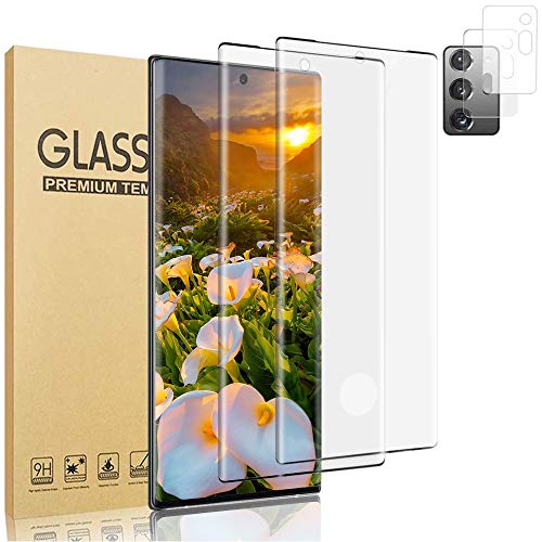 AFSKU - [4 قطع] قطعتين شاشة حماية زجاج مقوى تدعم الفتح ببصمة الاصبع + واقي عدسة الكاميرا [تغطية كاملة ثلاثية الابعاد] [درجة صلابة 9] لموبايل سامسونج جالاكسي نوت 20 الترا (6.9 بوصة)، شفاف