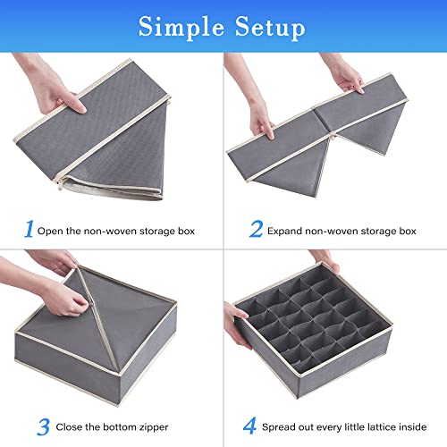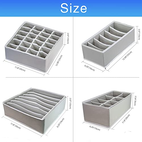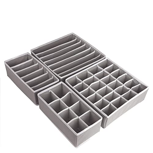 Generic - منظمات ادراج قابلة للطي، مقسم ادراج للشرابات وحمالات الصدر وملابس الأطفال وربطات العنق، 4 قطع - رمادي