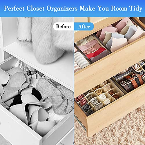 - 【مجموعات من 4 مقاسات】: تحتوي هذه العبوة على 4 أحجام من منظمات أدراج الملابس لتلبية احتياجات تخزينك المختلفة. 6 خلايا (32×16×10 سم)، 7 خلايا (32×32×10 سم)، 8 خلايا (28×14×10 سم)، 24 خلية (32×32×10 سم).