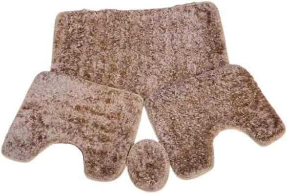 Generic - طقم دواسة حمام 4 قطع مبطن بالجلد ومضاد للانزلاق كود 11 الفراء بني مقاس واحد