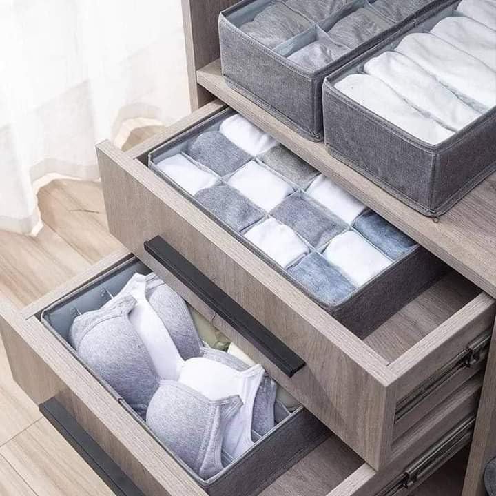 Generic - منظم ملابس داخلية وشرابات مكون من ٤ قطع من الكتان قابل للطي والغسيل( رمادي)