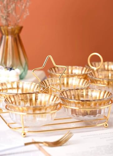 - ✅ 【مظهر فاخر وعصري】الإطار المعدني جولد مع الزجاج الشفاف يعطي الطقم طابعًا فخمًا وعصريًا يتناغم مع أي ديكور داخلي، ويجعل الطاولة أكثر أناقة وجاذبية ويبرز مستوى الذوق والاحترافية لدى المضيف ويعطي إحساسًا بالترف والرقي للضيوف أثناء الاستمتاع بالمكسرات والحلويات بطريقة منظمة ومرتبة دون أي فوضى. ✨