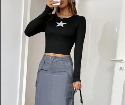 Generic - بيزك توب مطبوع بنمط نجمة للنساء من كيان للتجارة والتوزيع، لون أسود، كود 4017