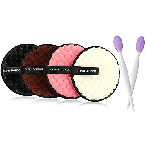450 - مجموعة وسادات ازالة المكياج قابلة لاعادة الاستخدام من 4 قطع تتضمن فرشاة شفاه السيليكون وجه صديقة للبيئة مناسبة لجميع انواع البشرة - مكياج العيون 450