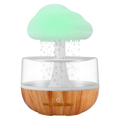 - **تصميم متعدد الوظائف مع خيار العلاج بالروائح العطرية:** استمتع بالفوائد المشتركة للترطيب والعلاج بالروائح العطرية. أضف الزيوت العطرية لتحويل المرطب إلى موزع، مما يطلق روائح منعشة ويخلق جوًا هادئًا. يحاكي تصميم سحابة المطر الصوت اللطيف لقطرات المطر، مما يعزز الاسترخاء. يبلغ مقاس الجهاز 24 × 17 سم وهو مصنوع من مادة ABS المتينة. كما يعمل كضوء ليلي مع 7 خيارات ألوان قابلة للتعديل.