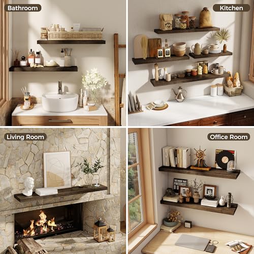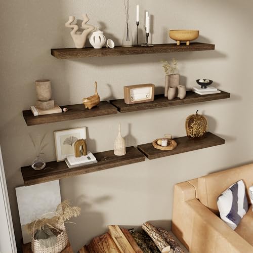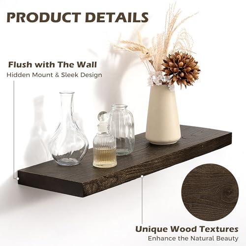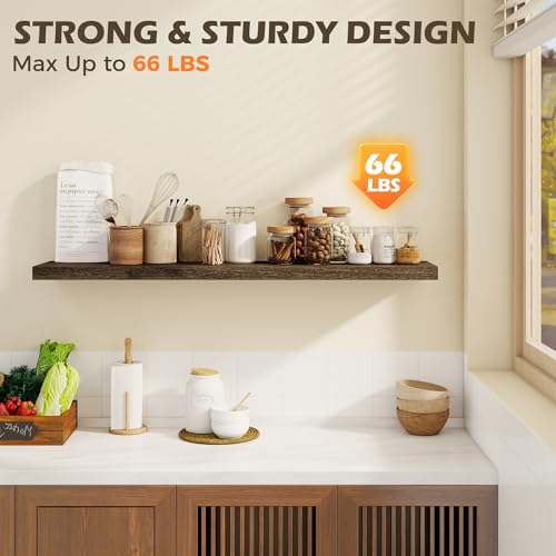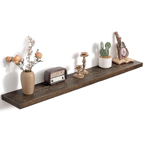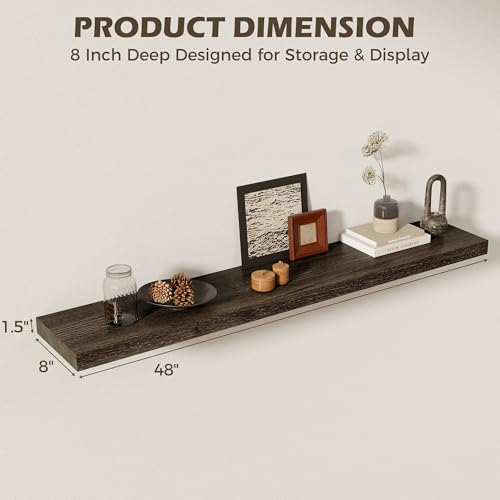 RICHFOCUS - ارفف عائمة للحائط مقاس 48 انش مجموعة من قطعة واحدة، ارفف خشبية صلبة بتصميم ريفي عالي الجودة لتخزين الديكور، ارفف عائمة مثبتة على الحائط مع دعامات غير مرئية لغرفة النوم والمطبخ والحمام من خشب الجوز