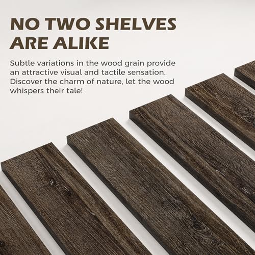 - تصميم شديد التحمل: تتميز هذه الأرفف الخشبية بتصميم دعامة مخفية معززة ويمكنها دعم ما يصل إلى 60 باوند بأمان عند تثبيتها على الحائط بشكل صحيح. لمنع ترهل الرف، نستخدم دعامات مطورة لضمان بقاء العناصر مدعومة بأمان أثناء التخزين