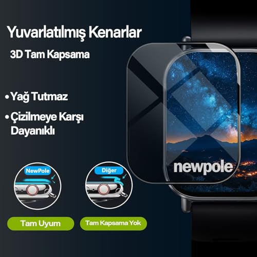 NewPole - [متوافقة مع ساعة ريدمي اكتيف 5] شاشة حماية للساعة نيو بول لساعة اكتيف 5 نانو من الزجاج المقوى عالي الدقة متوافقة مع ساعة شاومي ريدمي ووتش 5