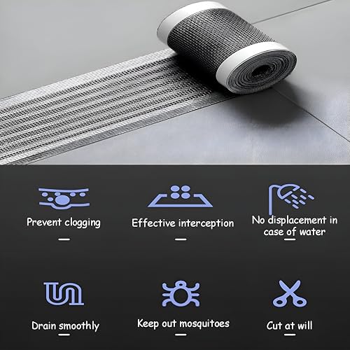 Generic - رول فلتر البلاعات بلزق قوى ملصق شبكي لتصريف المياه مع مجرفة تركيب الفلتر - شبكة ذاتية اللصق لفة لتركيب في أحواض الاستحمام وأحواض المطبخ ( 5 متر لفة ، 7 سم) (قطعتين)