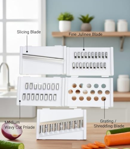 Generic - قطاعة خضروات متعددة الوظائف 5 في 1 مع شفرات حادة قابلة للتعديل، لتقطيع البصل والبطاطس والجزر، تصميم عصري آمن لليدين