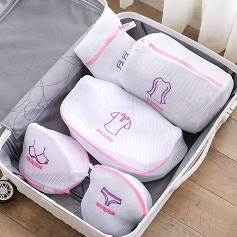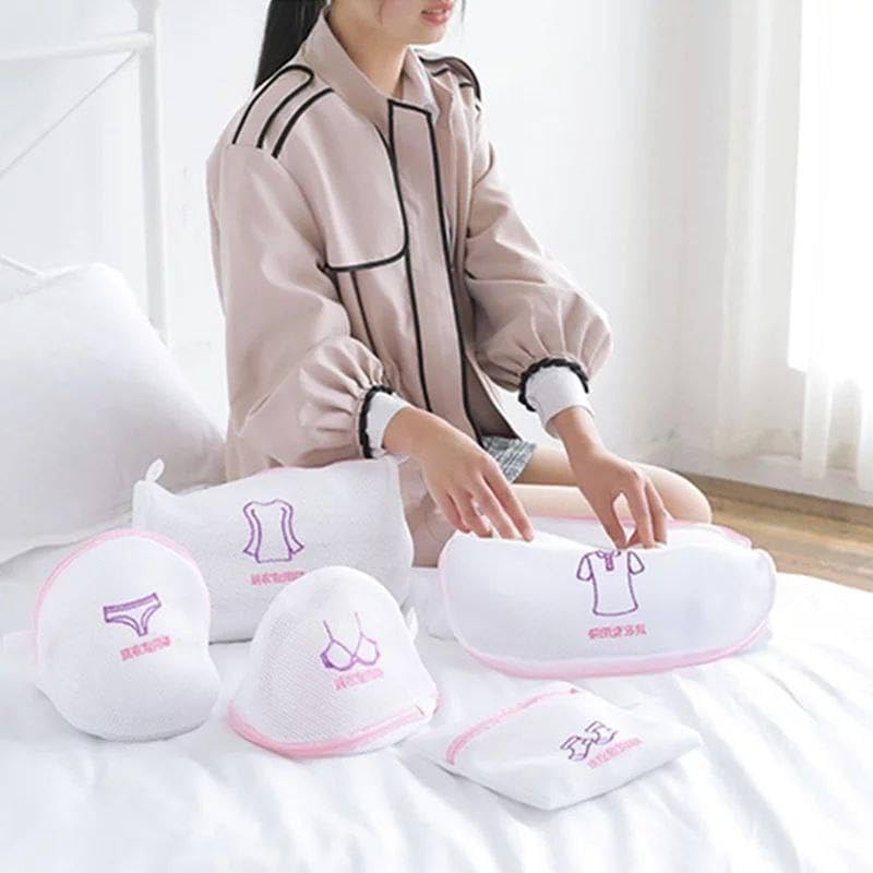 Generic - طقم 5 قطع غسيل شبك كيس لغسيل الملابس الداخلية والمحافظه عليها مزود بعمات للحفاظ على أبيض ايه بي اس