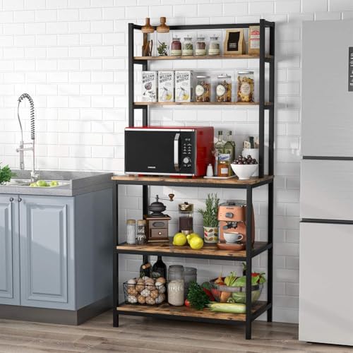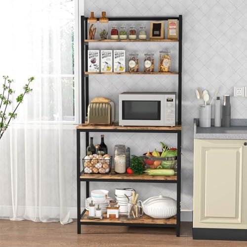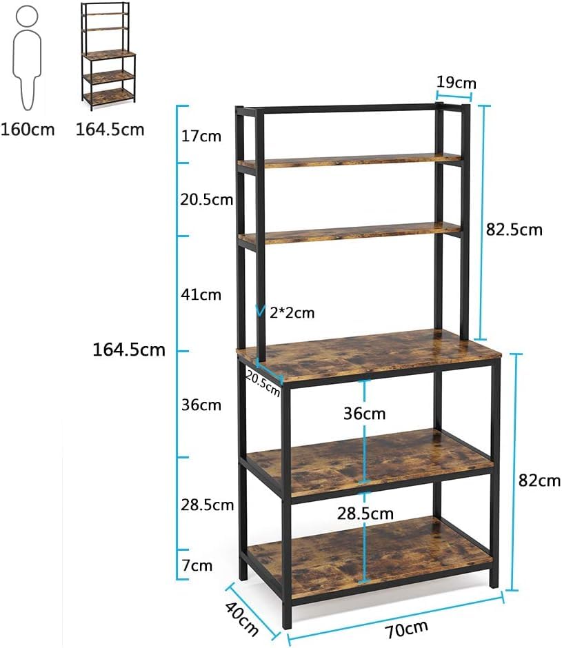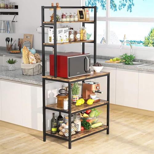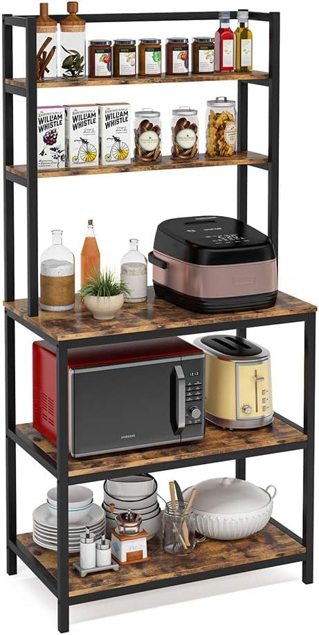 Generic - رف معدن للمطبخ مناسب للميكروويف والفرن والتوابل وأدوات تناول الطعام بتصميم صناعي قائم بذاته من 5 طبقات (سميك ومقوى)، (لون بني عتيق)- MASTEEL022