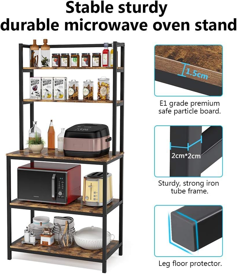 - كل شيء في مكانه: مع إجمالي 3 أرفف سفلية و2 رف علوي، يعد رف الميكروويف خيارًا ممتازًا للتخزين لغرفة المعيشة في المطبخ. رف مثالي لتخزين الميكروويف والفرن وبعض أدوات المطبخ الأخرى أو الأشياء الصغيرة، وكذلك لتخزين التوابل والأواني الفخارية وغيرها من الأشياء المرغوبة. سيصبح مطبخك مرتبًا.
