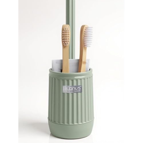 Generic - مجموعة اكسسوارات حمام بلاستيكية مكونة من 5 قطع، تتضمن فرشاة مرحاض وموزع صابون سائل وسلة مهملات وحامل فرشاة اسنان ومعجون اسنان وطبق صابون، مجموعة منظم حمام متينة (لون اخضر مينت)