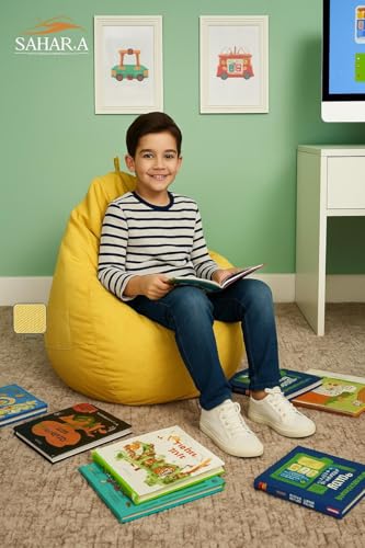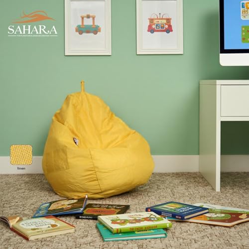 Generic - كرسي بين باج للأطفال حتى 15 سنة 50 × 90 سم - كرسي صغير مريح وخفيف 1.5 كجم - قماش كتان قابل للغسل مع جيب جانبي مزدوج (أصفر)