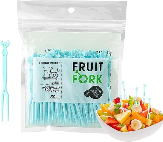 - مجموعة كاملة: تحتوي على 50 قطعة من شوك الفاكهة البلاستيكية باللون الأزرق الفاتح، مثالية للاستخدام المنزلي اليومي