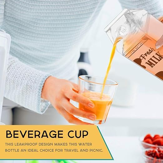 Generic - زجاجة من البلاستيك بتصميم علبة لبن كرتون بنمط بقرة مع غطاء للمياه واللبن والعصير للأماكن الخارجية وممارسة الرياضة، سعة 500 مل شفافة