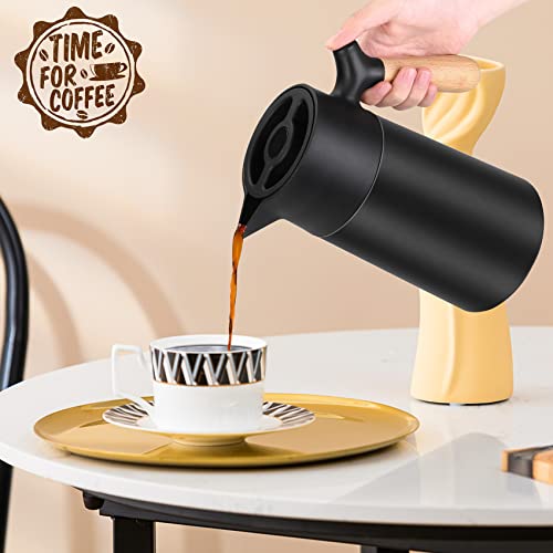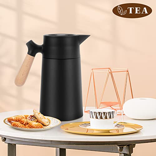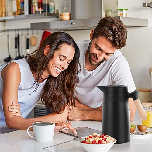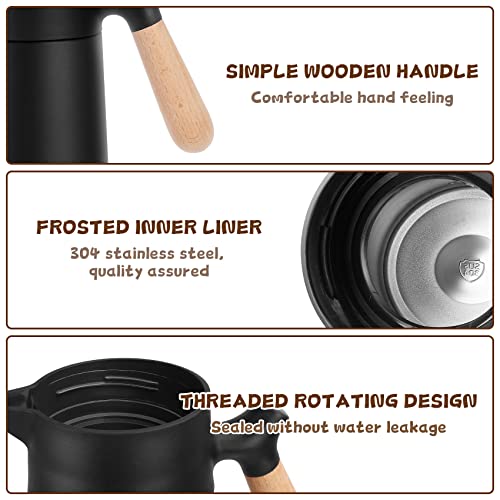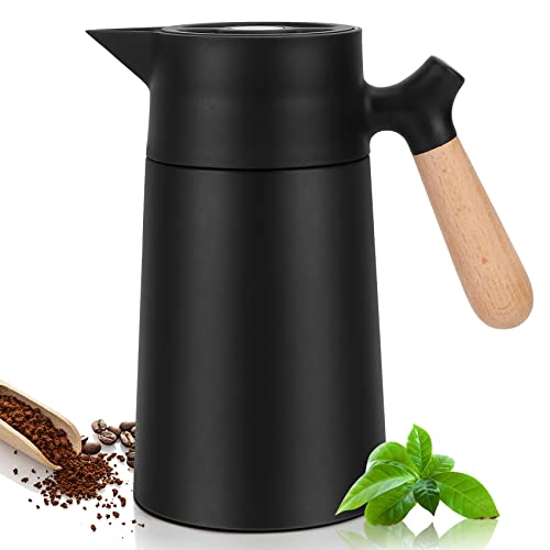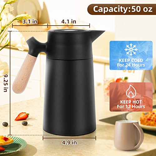 Carperipher - إبريق قهوة معزول من الفولاذ المقاوم للصدأ ترمس حراري بتقنية التفريغ مع غطاء ومقبض من الخشب الصلب للقهوة والشاي والماء أو المشروبات الساخنة والباردة – يحافظ على السخونة والبرودة 12 ساعة 1.5 لتر (أسود)