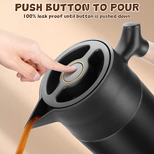 - ️☕️تصميم مانع للتسرب وسهل الاستخدام – يتميز إبريق القهوة الحراري بغطاء محكم الإغلاق مصمم ببنية جديدة معزولة ومفرغة من الهواء، وحجم أكبر وحلقات سيليكون مزدوجة؛ مما يضمن بقاء الإبريق محكم الغلق دائمًا في مكانه الصحيح. يوفر الإبريق الحراري أقصى درجات الراحة في الاستخدام من خلال زر ضغط عملي، وحتى مع الميلان الخفيف فإنه لا يسرب ولو قطرة واحدة؛ مما يجعله خيارًا رائعًا للنساء والأطفال وكبار السن.
