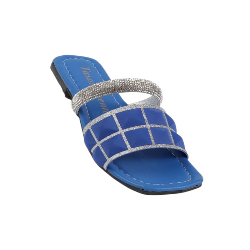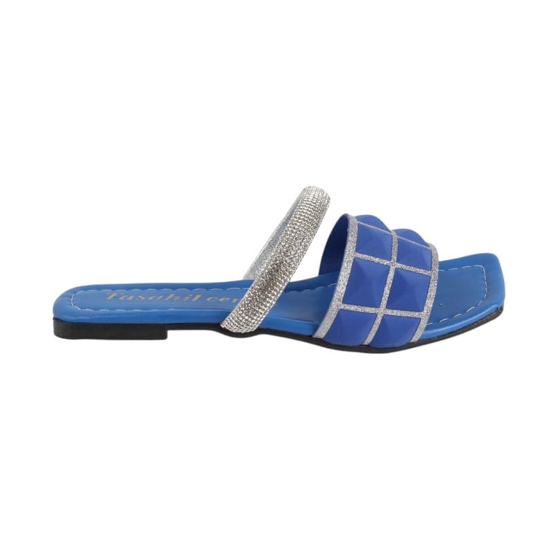 Generic - سليبر حريمى فلات جلد فى قماش 520 ازرق 40