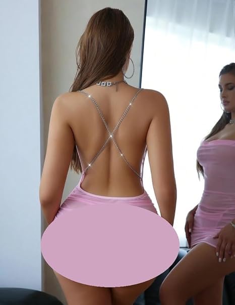 Generic - لانجري قصير بسلاسل كتف لامعة بقصة ملاصقة وتمويجات جذابة لإطلالة أنثوية من كيان للتجاره والتوزيع، كود 591
