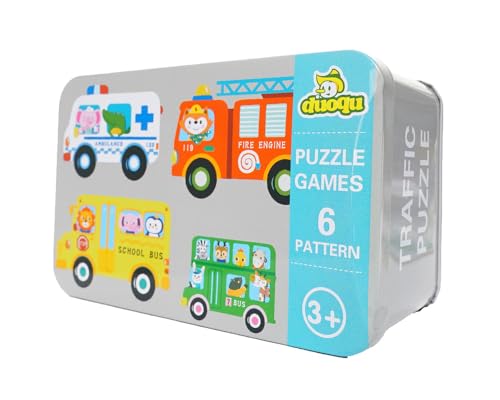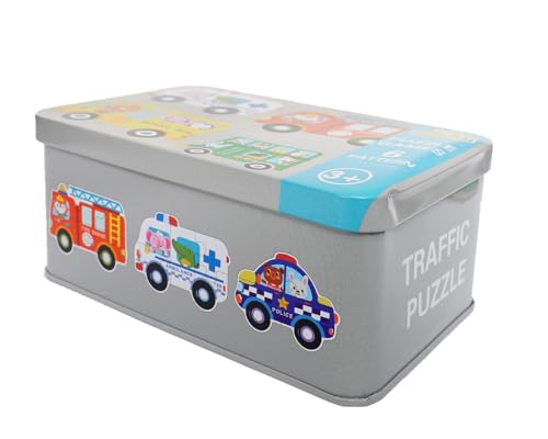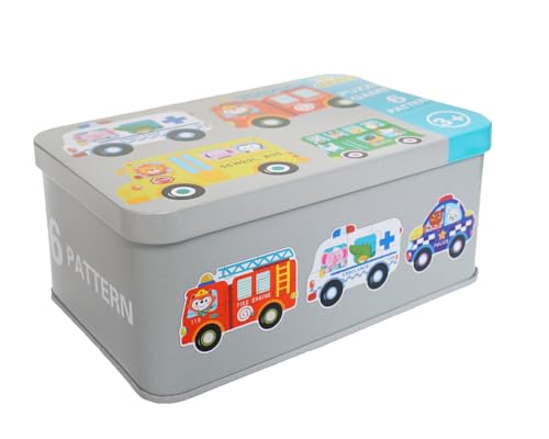 Generic - لعبة بازل خشب 6 أشكال مختلفه 28 قطعه داخل علبة معدن - رمادي Ofer-18