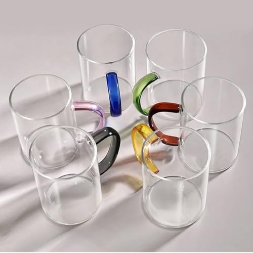 Al Arab for Import & Distribution - Ismail EL Fiky - طقم مجات حرارية بايركس بمقبض بألوان متنوعة، سعة 330 مل، 6 قطع